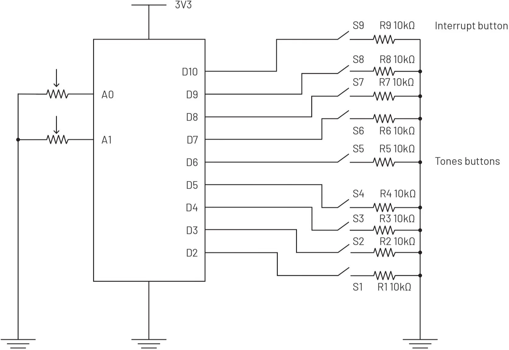 The problem is that the song needs 18 notes, but my breadboard can support up to 9 buttons. My guess is to use both pushbuttons and a keyboard in Ableton. From my current understanding, A to L on the keyboard are C3 D3 E3 F3 G3 A3 B3 C4 D4, which can cover 9 notes of my project, so breadboard is suitable for the remaining 9 notes. But this method actually separated the continuous notes, for example, F2 A2 B2 // E4 F4 G4 A4 B4 C5 on a breadboard and C3 D3 E3 F3 G3 A3 B3 C4 D4 on a keyboard, which makes it technically difficult to play with, especially when D4 E4 or B2 C3 need to be played in one bar (1 note on breadboard and another one on keyboard). After several attempts, I ordered a second breadboard, which is available and easiest to me. Here are other ways that may work.