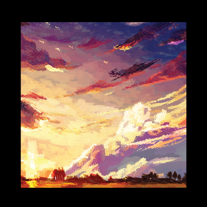 I recreated a scene of sunset. The goal is to learn how to use and experiment with Photoshop brushes, Wacom tablet, stylus pen, and all the brush settings and features. The most interesting part of this project is to discover how to create different items in the picture with the unique characteristics of brushes. For example, I used the exclamation mark and the letter Q to paint the two kinds of clouds, the letter H for the light of the sunset, and the number 3 for the texture of the trees. I used all 8 strokes for all items in the picture.