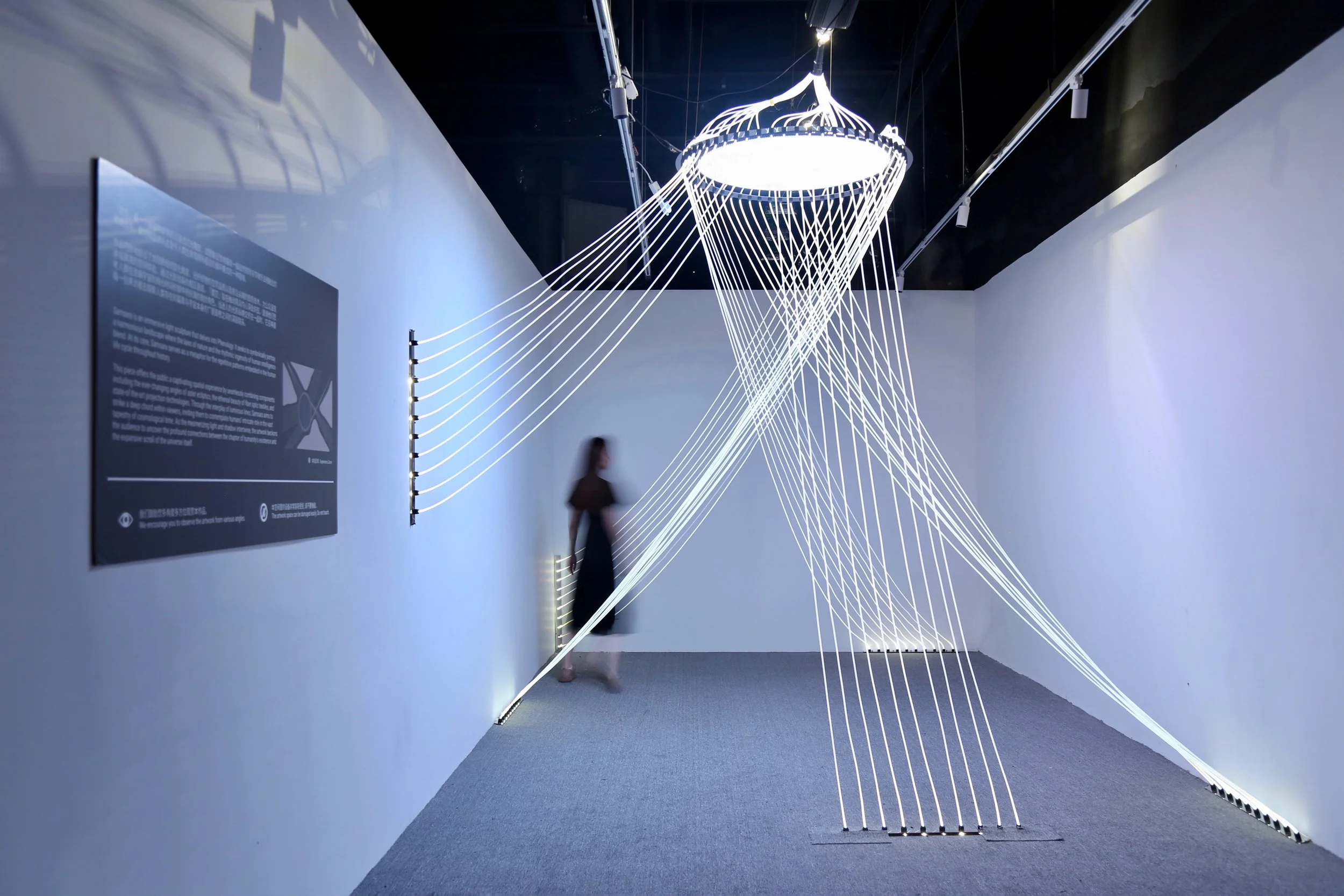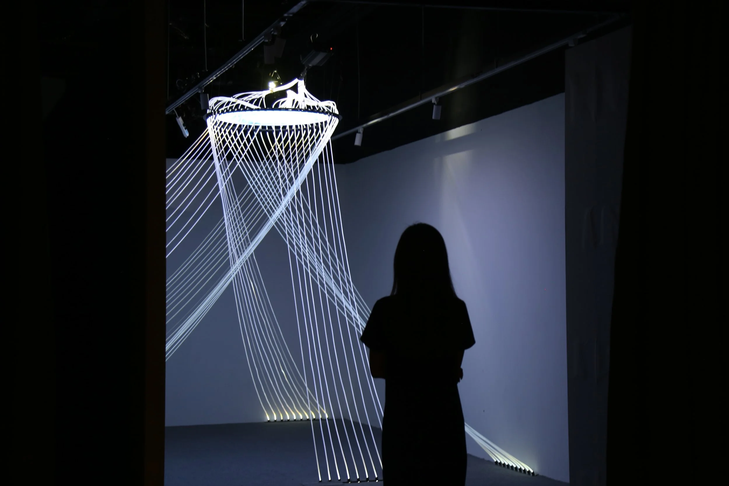 Samsara is an immersive light sculpture that explores Phenology, the study of natural phenomena that recur periodically in plants and animals and how they relate to seasonal changes and climate. The word Phenology is derived from the Greek φαίνω, 'to show, to bring to light, make to appear' + λόγος, amongst others 'study, discourse, reasoning.' The work seeks to symbolically portray a harmonious landscape where the laws of nature and the rhythmic ingenuity of human intelligence blend.